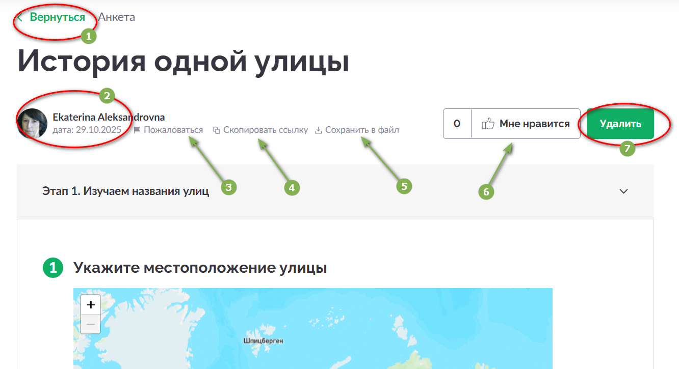 Позволяет отправить прямую ссылку на анкету учителю или другим участникам.