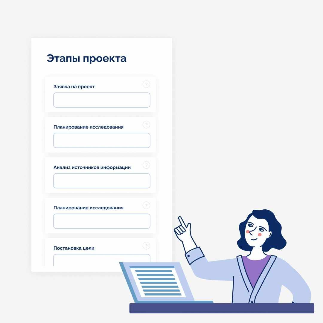 Каждый этап и поле паспорта имеют краткие описания, которые помогают понять их назначение, не пропустить ничего важного и получить идеи для новых проектов.